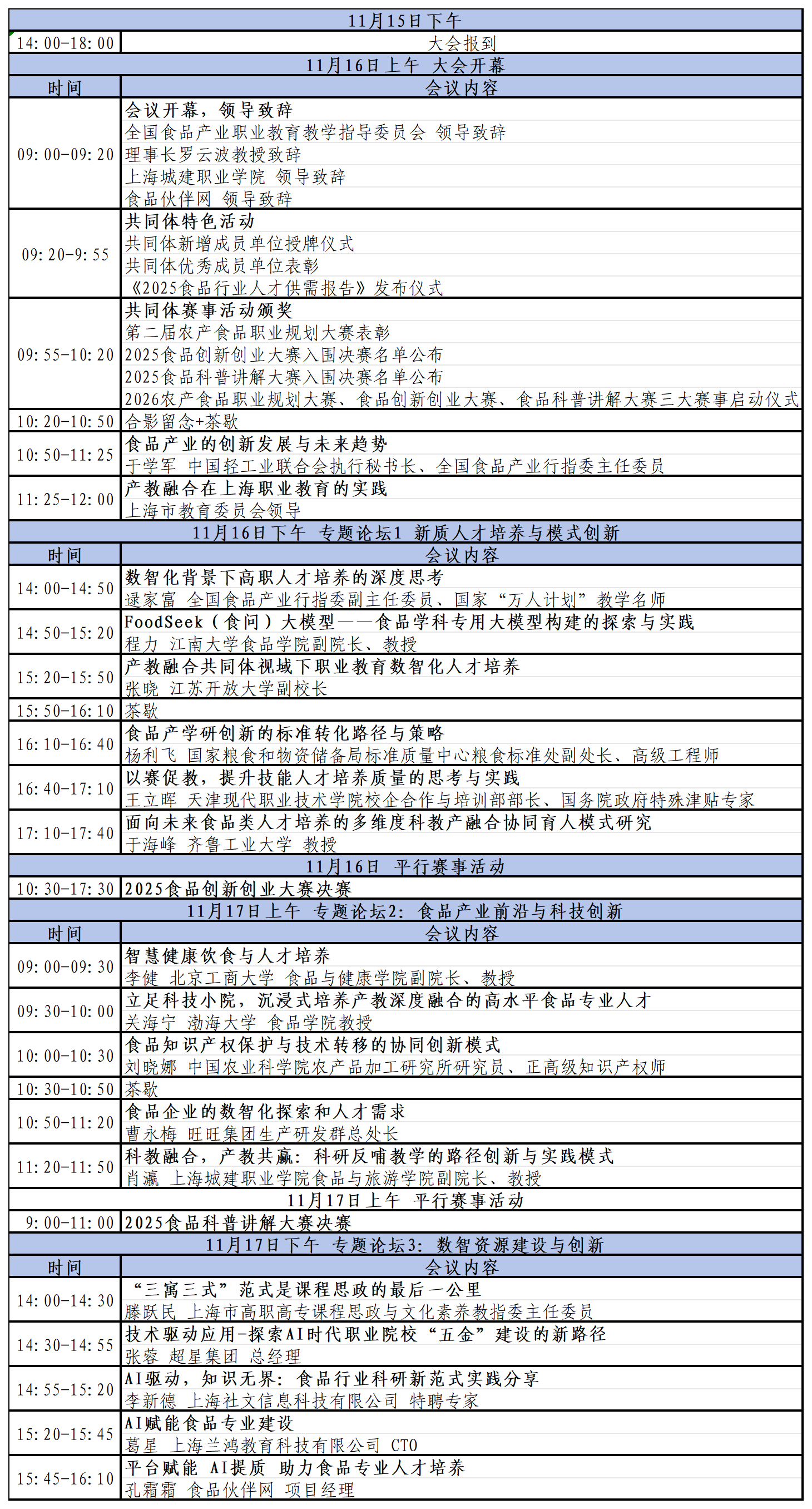 为进一步落实国家关于产教融合的战略部署,推进人才链、教育链、产业链、创新链有效衔接,搭建高层次的食品行业交流合作平台,分享科研成果新进展,探讨行业发展新需求,探索人才培养新范式,促进产学研建设中的数智化发展,助力食品行业在新发展阶段实现转型升级,全国农产食品行业产教融合共同体将于2025年11月15-18日在上海召开“2025 全国农产食品行业产教融合共同体年会暨第三届食品行业产学研创新合作研讨会”。诚邀各高校、科研院所、相关企业、专家学者及食品行业同仁莅临本次会议。具体通知如下: