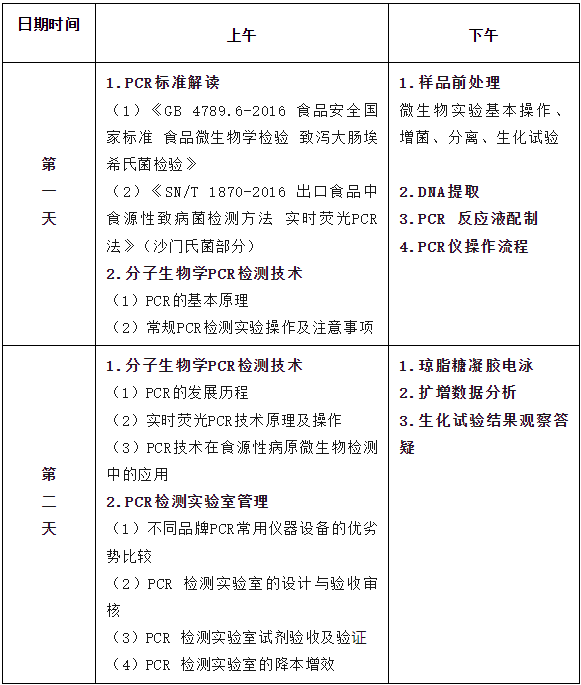 为帮助各检验检测机构、研发机构、生产加工企业的实验室技术人员规范分子生物学实验室建设、提高专业技术能力水平,满足检测人员对新技术学习的要求。食品伙伴网将举办“分子生物学及PCR检测技术实际操作培训班”。